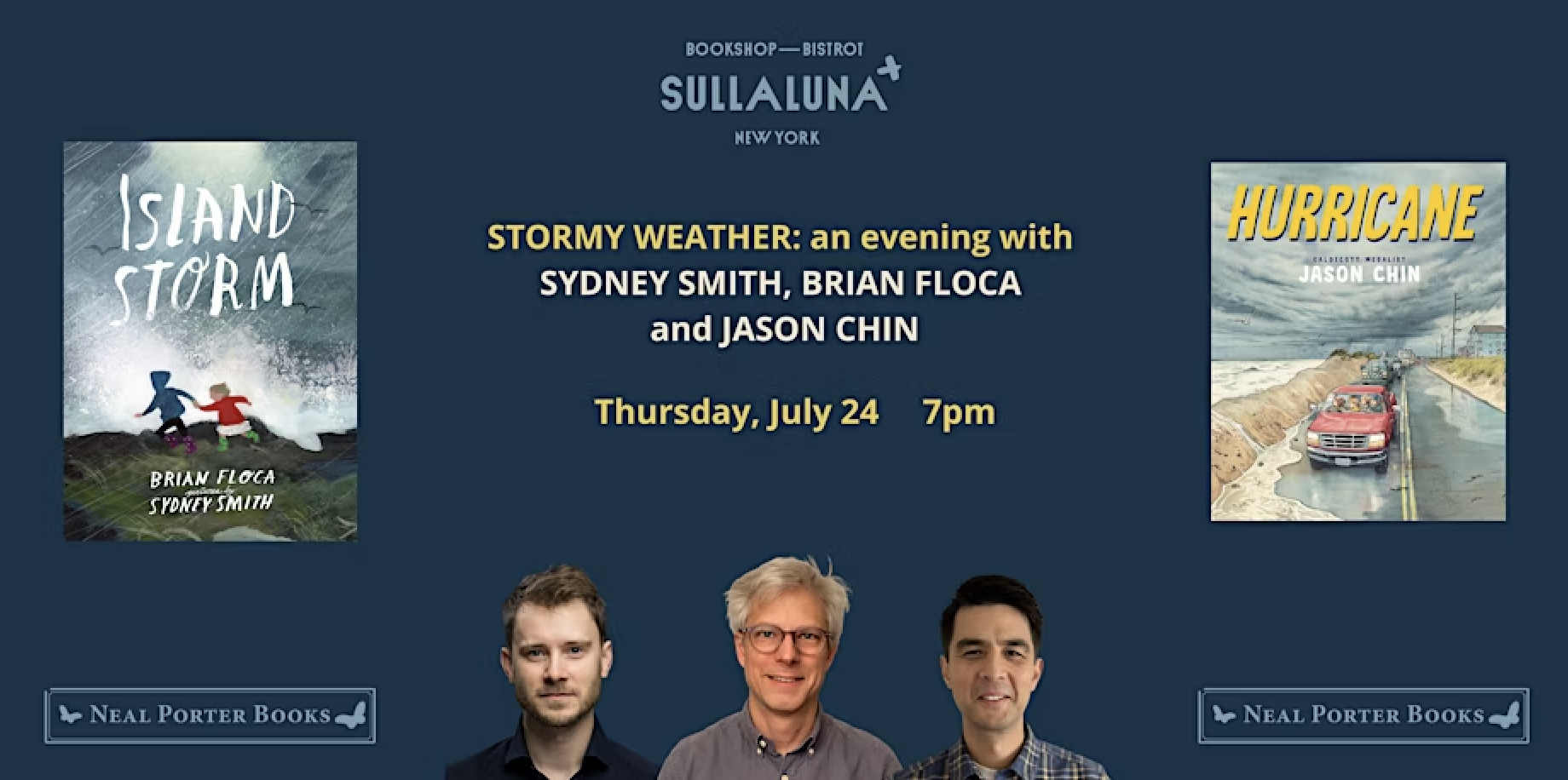 Join Caldecott and Sibert Medalist JASON CHIN, Caldecott Medalist BRIAN FLOCA, and Hans Christian Andersen Award Winner SYDNEY SMITH for a conversation about their latest books: Hurricane and Island Storm.